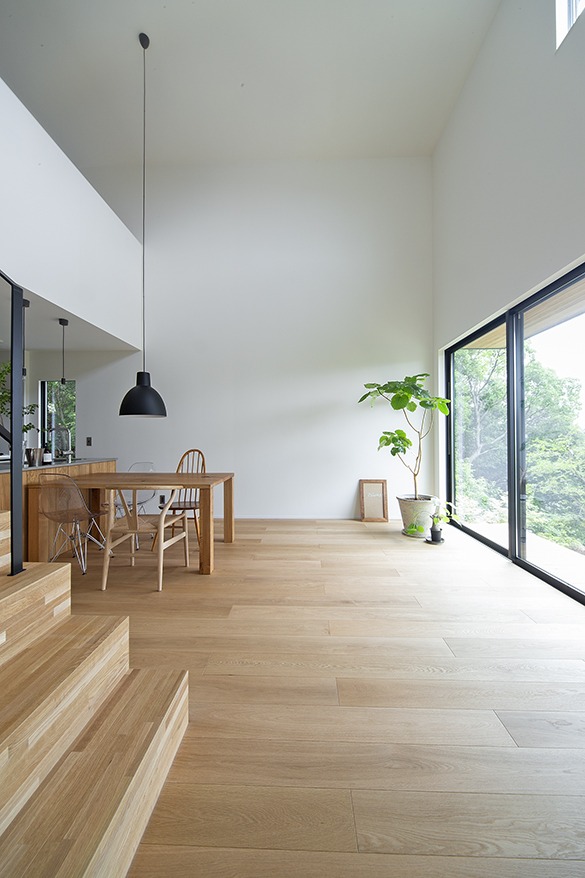 天井に照明を付けすぎずに、なにもない真っ白な壁を最大限残すことが