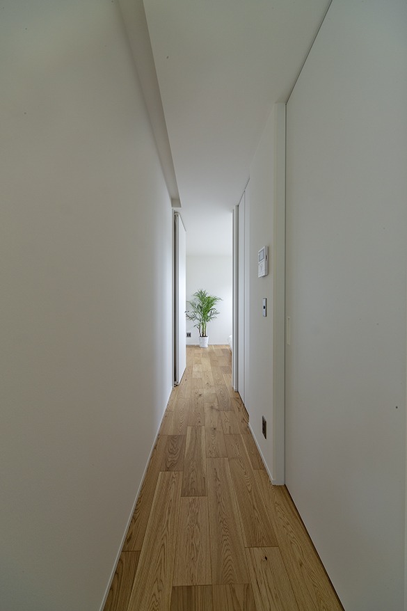 こちらは廊下にも間接照明を埋め込んで、真っ白な壁を綺麗に残したすっきりとした空間になっています。