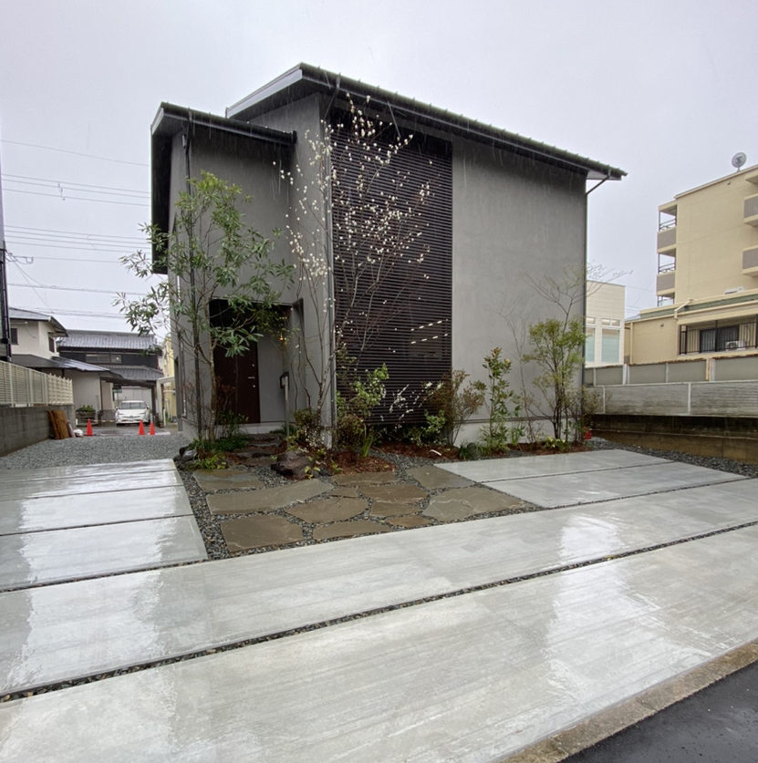 スタッコフレックスをつかった塗り壁の仕上げで、植栽もふんだんに植え付けしてもらいました^^
