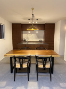 オークの無垢の木をつかったダイニングで、質感のよい仕上げになっています!