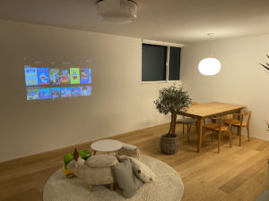 キッズスペースでは漆喰の壁をスクリーンにして、