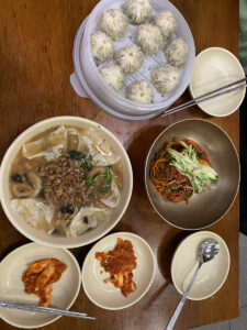韓国手打ち麺(カルグクス)の名店で、スープと麺の上には自家製ワンタンが乗っていて、