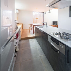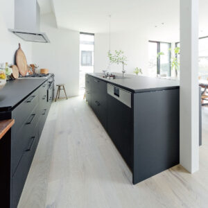一直線に配置されるため、シンプルで洗練された外観になっており、スペースを有効活用したい場合や狭いスペースにフィットさせたい場合に適しています。また、狭いスペースでも十分な作業スペースや収納スペースを確保でき、調理器具、洗浄エリアなどが一直線に配置されるため、作業効率が高く、家事動線がスムーズになります。レイアウトが単純なため、掃除やメンテナンスも比較的簡単に行えます。