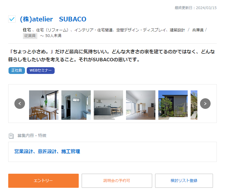 個別説明会では、SUBACOの企業理念、施工例、募集職種など幅広くご案内させていただきます。