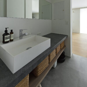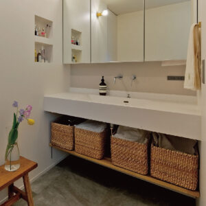 また、継ぎ目がないためお手入れがしやすく、洗面ボウルとカウンターの間に溜まった汚れやカビを取り除くのが容易になり、清潔な状態を保ちやすくなります。