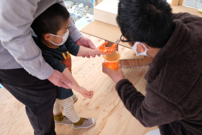 ご家族で手形をしたり、メッセージを書いたりしております♪