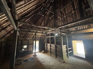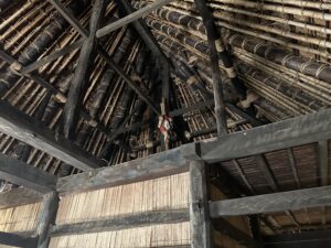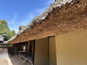 厚みのある茅葺き屋根が目の前で見ることができます。