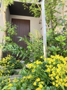 本社の玄関アプローチには黄色い小さな花が咲き乱れ、満開になりました!