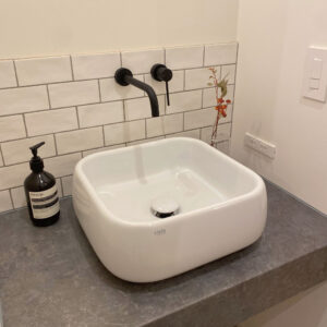 今回の造作洗面台は、ベッセルタイプと言って、カウンター上にボウルを置いたつくりになっています。
