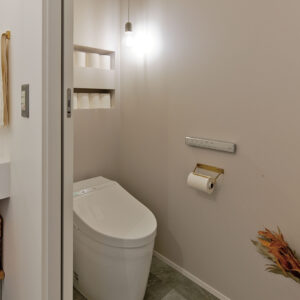 トイレは限られた空間の中で収納が必要なアイテムが多いため、トイレットペーパー、掃除用具、消臭剤などを効率的に収納でき、見た目もスッキリとした印象に仕上がります ^^