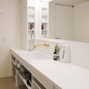 例えば、歯ブラシや化粧品など、散らかりがちな洗面スペースに深めのニッチを設けることで、これらのアイテムをすっきりと整理でき、洗面スペースが常に整った状態を保つことができます。