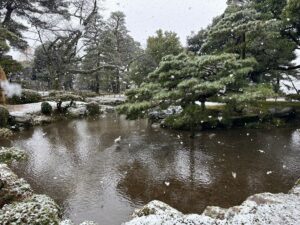 金沢では、雪景色の兼六園が幻想的で感動しました。のどぐろの一匹焼は絶品でした…!