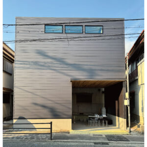 普遍的な美しさを持つガルバリウム鋼板の外壁と、天然木を組み合わせたシンプルながらも洗練されたデザインが特徴的な魚崎南町の家。