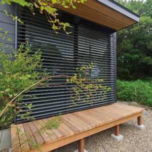 外部に設置するシェードは、窓や壁に直接太陽光が当たるのを防ぎ、室内温度の上昇を抑えます。