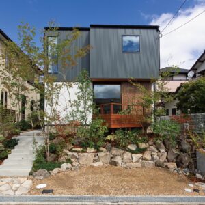 家への道のり、つまり玄関までのアプローチを少し長めに作ることで、お家がより広く感じられる効果があります。