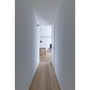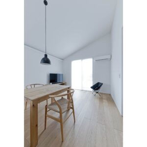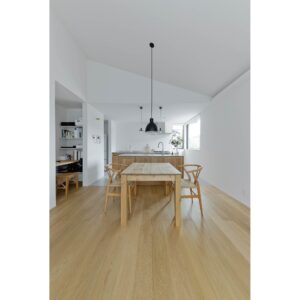 床材にはオークのフローリングを使用し、節のないワンピース材(1m80cmの長さ)を貼ることで、高級感と上品さを引き立てています。