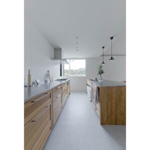 通常、レンジフードはキッチンの正面部分に設置されますが、Ⅱ型キッチンを採用することで、背面にレンジフードを配置しています。