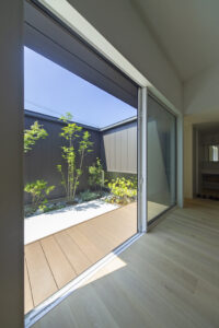 窓を設けても隣家の視線が気になり、カーテンを閉めっぱなしにすることが多いですが、中庭を設けることで、隣家の視線を気にせず、プライバシーをしっかり守りながら、開放的でリラックスできる空間が生まれます。
