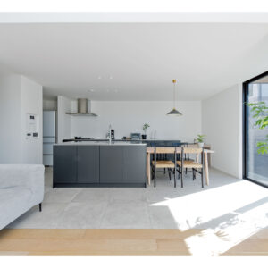 リビングとダイニングがつながったオープンな空間は、家族がゆったりとくつろげる場所として機能し、自然にコミュニケーションが生まれる場となります。