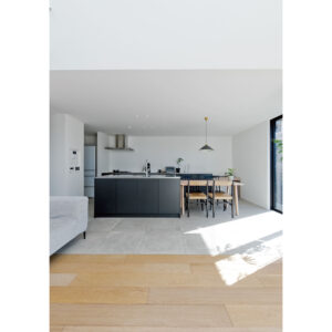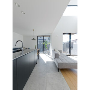 高い天井や大きな窓を活用して、明るい光を取り入れることで、広々としたリビングを作り出し、家族がリラックスできる心地よい空間が生まれます。