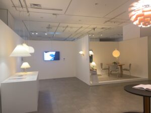 広々としたブースで数々の有名な照明が展示されていて