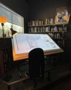 この小さな机から生まれたアイデア一つ一つが集まって、あの壮大な作品が完成したなんて、