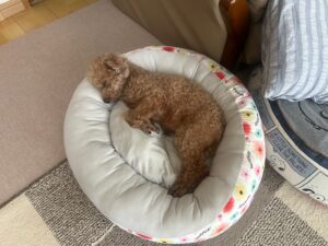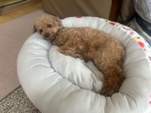 こちらの写真は実家で飼っているトイプードルです。可愛くて癒されてます。(*^^*)
