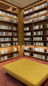 高級感あふれる内装と天井までの本棚でつくられた空間はとても心地よく、何時間でもいられる場所でした。