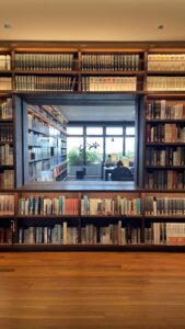 奥は自習スペースです。本棚の一部が室内窓になっていたのですが、まるで一枚の絵のようではないですか?