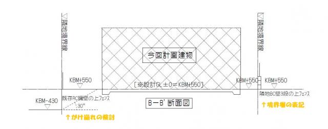 がけに面している敷地の場合はがけ崩れに対しての検討が必要なので(がけ条例)