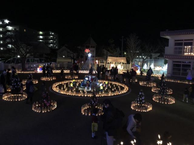 夜の開催ということもあって、毎年幼稚園の運動場はペットボトルのキャンドルでいっぱいになります。