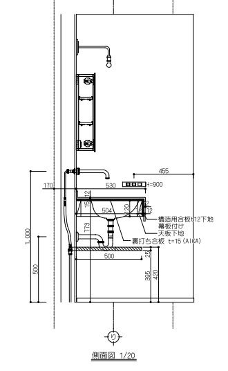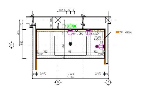 こちらは造作洗面台の平面詳細図に電気図が描いてあります。