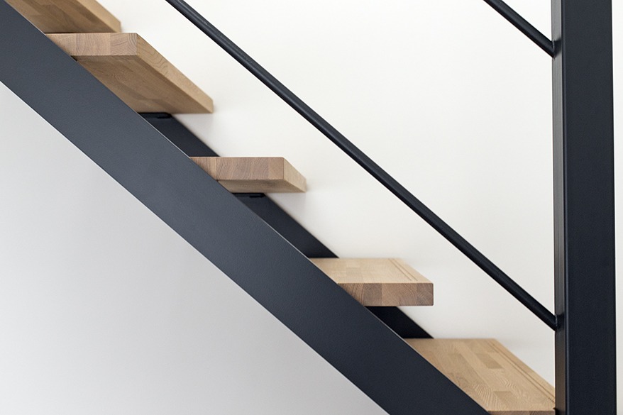 玄関をあけると目に入るアイアンの造作階段や