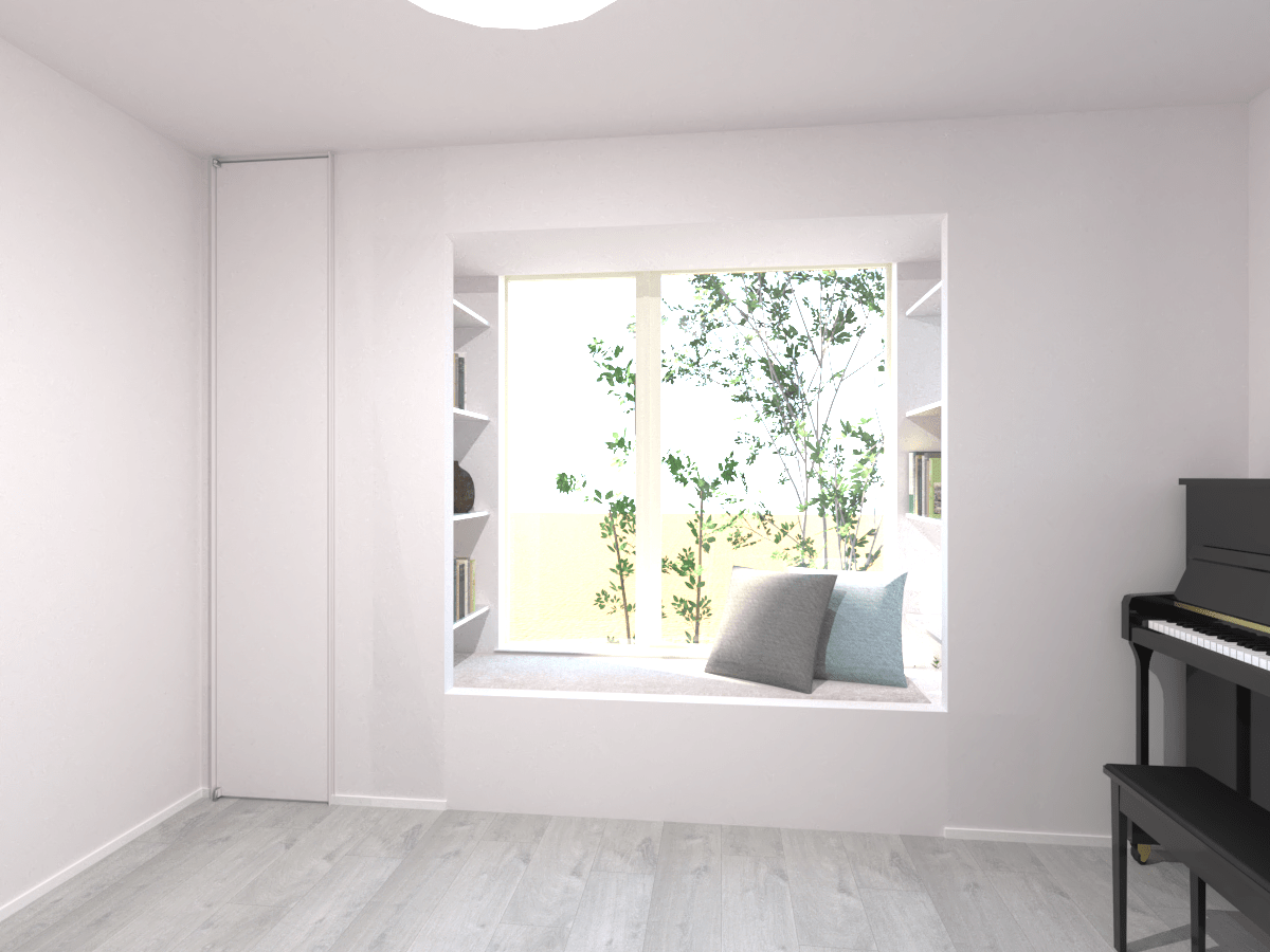 公園を見渡すことができる大きな窓のLDKには