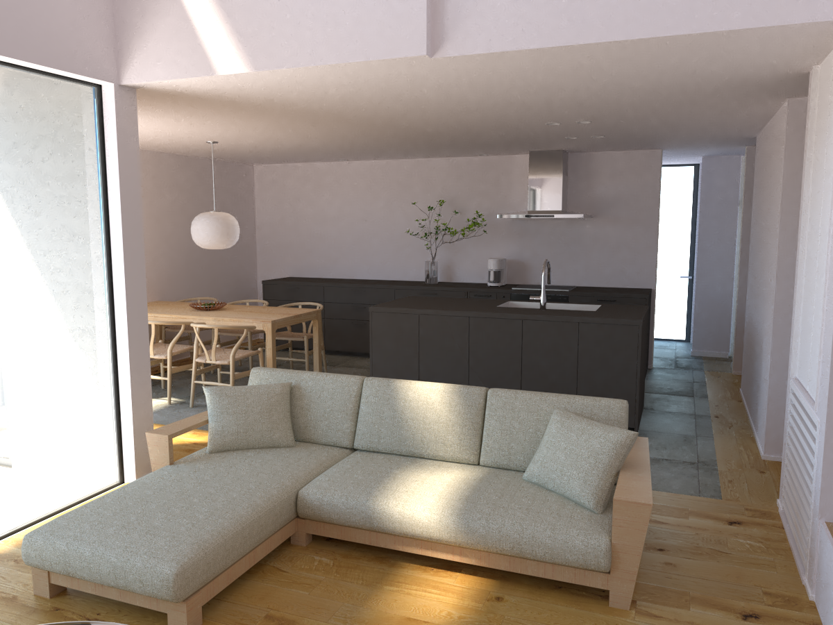 常に家族と緑が感じられる。明るくて暖かい、帰るのが楽しみな家