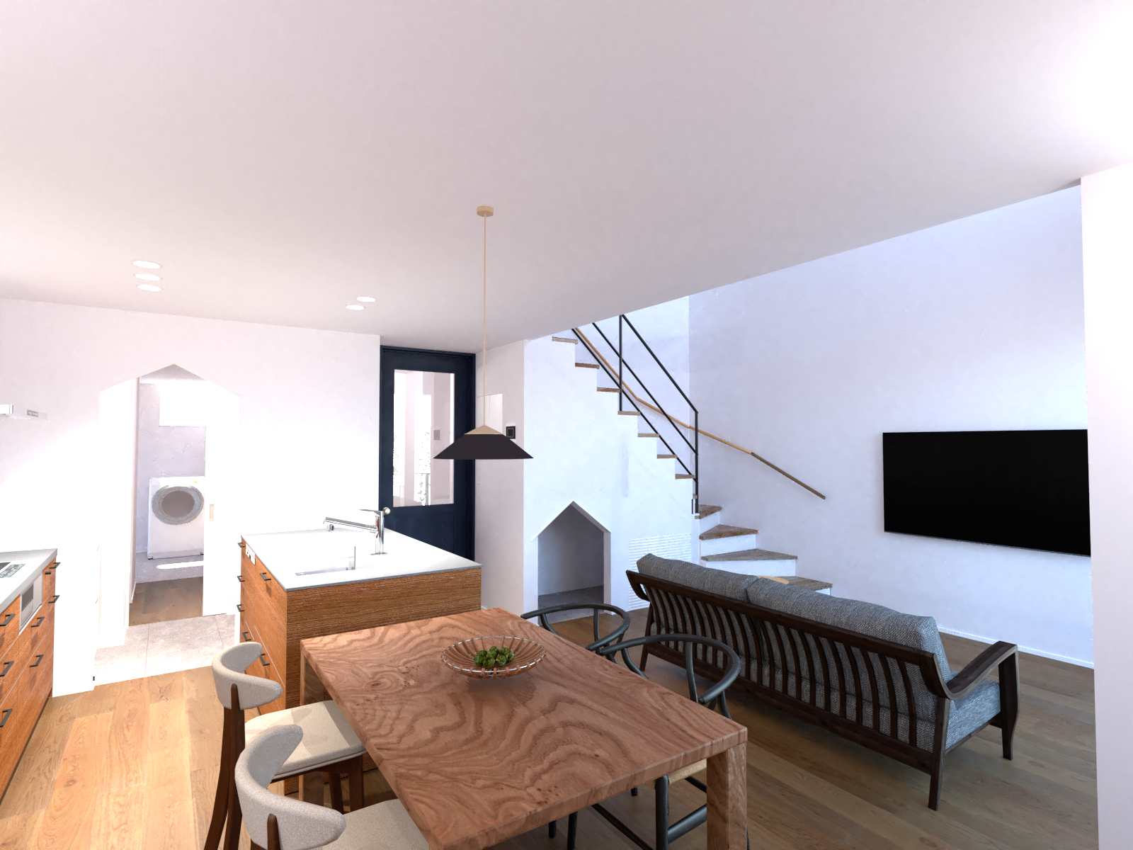 ダイニングキッチンは配膳がしやすい横並びで計画し、