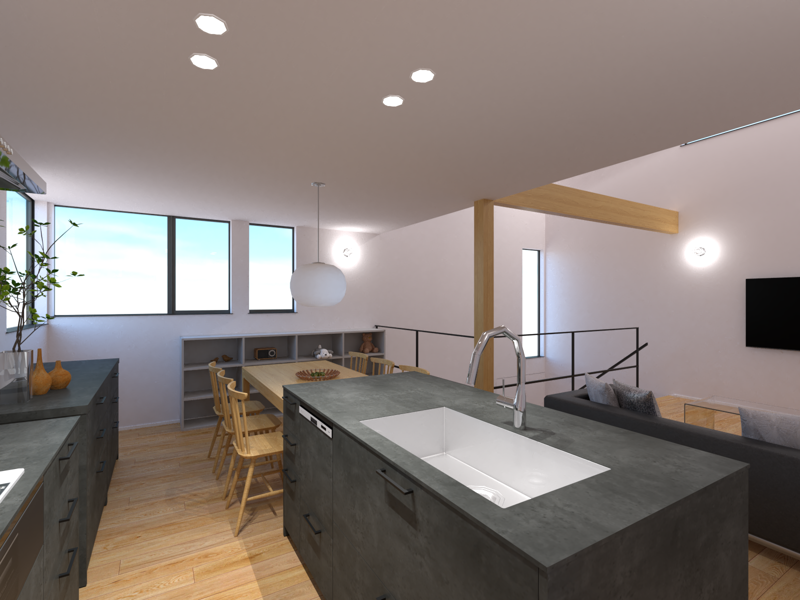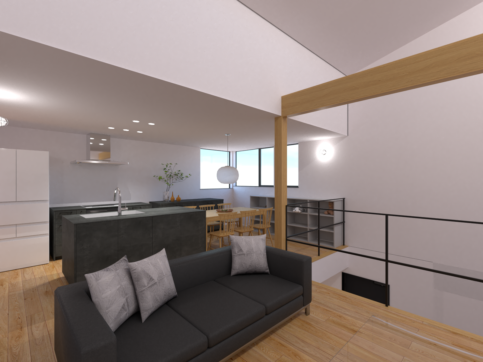 プライバシーの守られた2階リビングのお住まいで、太陽の光がサンサンと降り注ぎ、開放感を感じるリビングに。