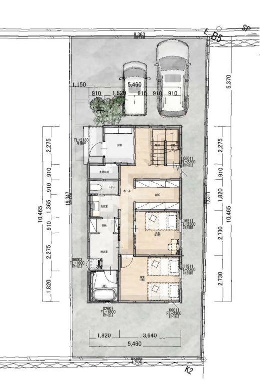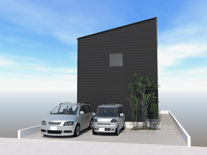 高台の敷地で2階リビングから空と海の景色を眺められる、そんなお家を計画しました。
