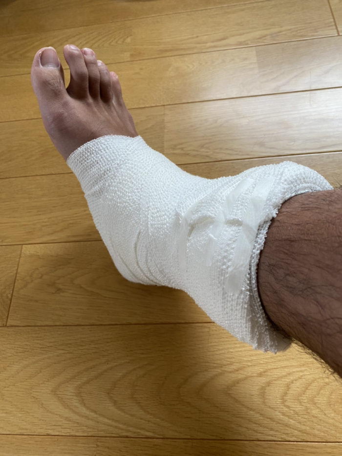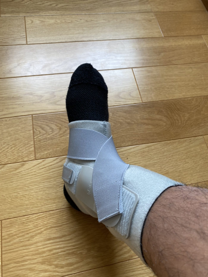 階段で足を滑らせ、靭帯を痛めてしまい、こんな感じになってました。。。