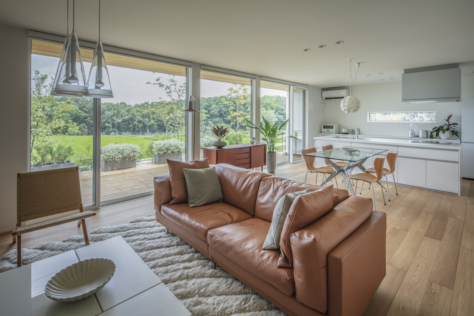 大きな掃き出し窓が並ぶ開放的なLDKからは