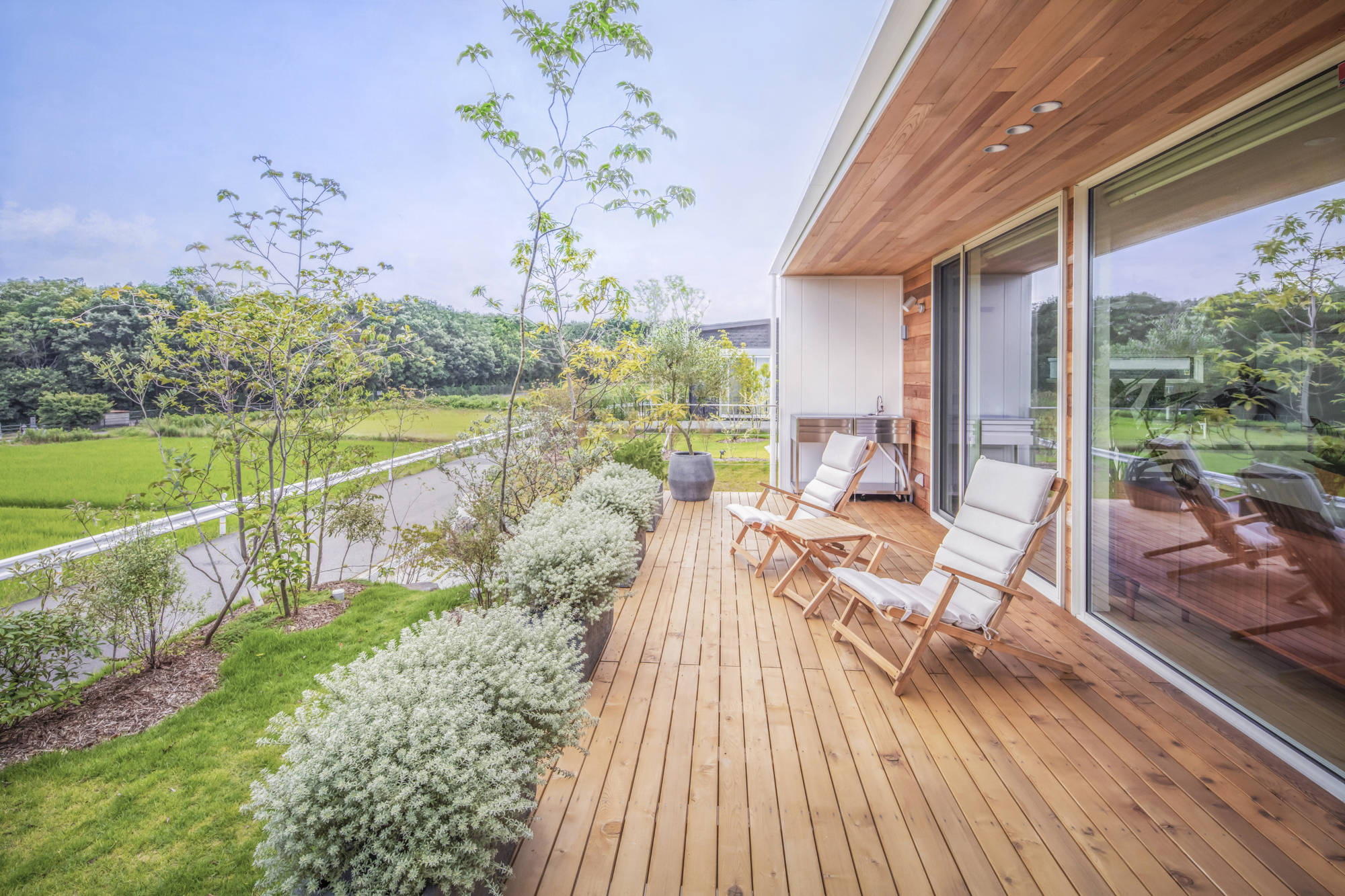 広々としたウッドデッキも