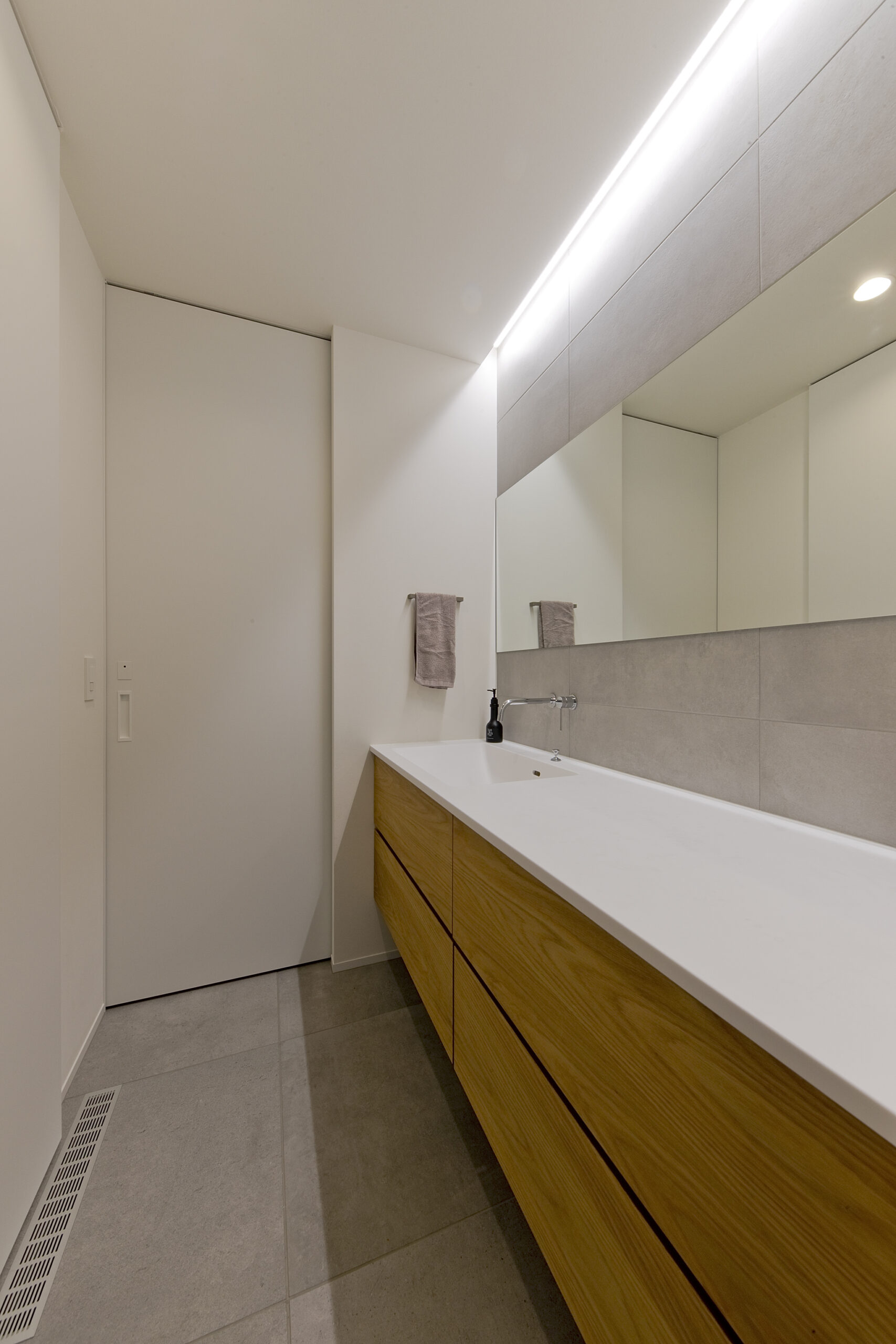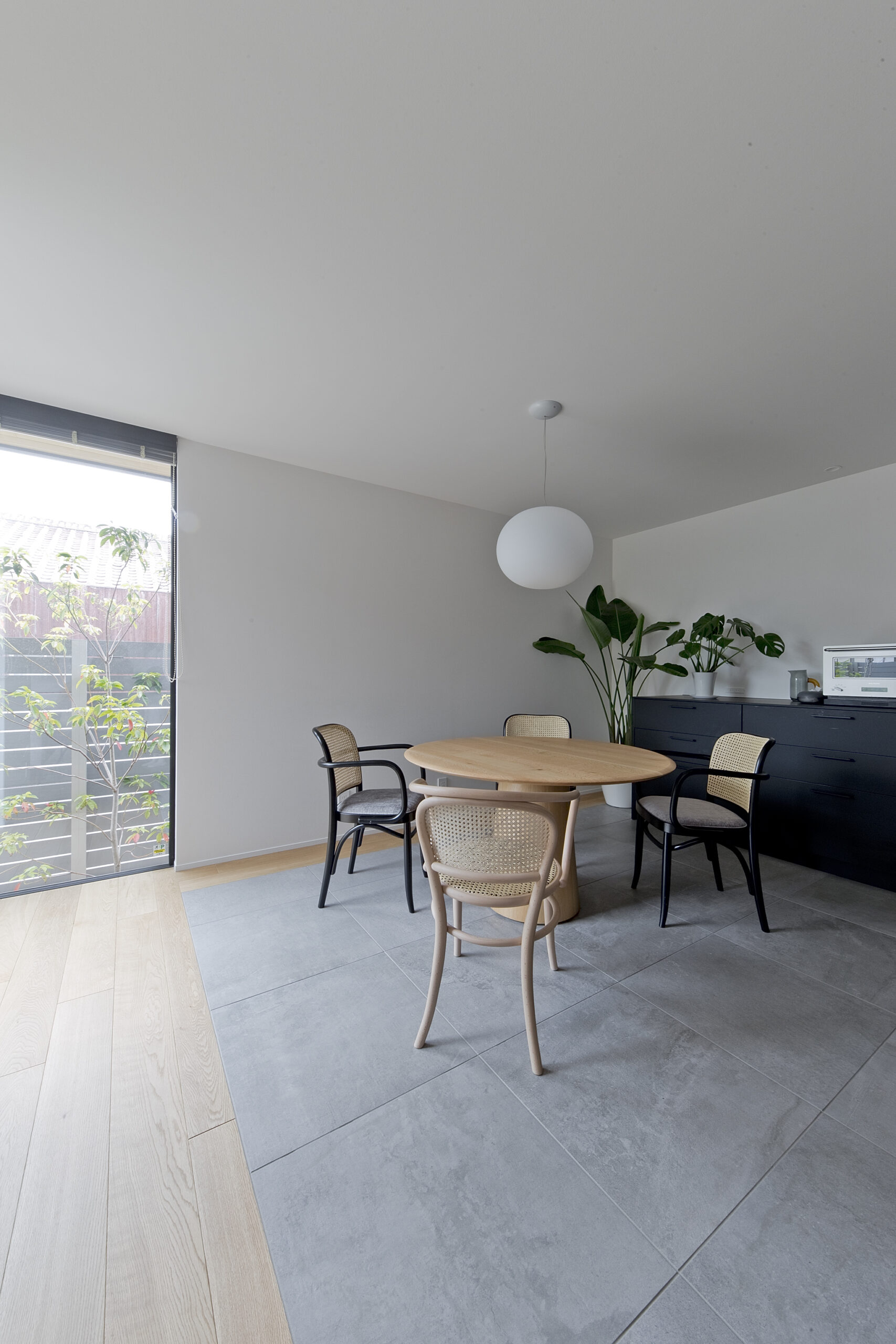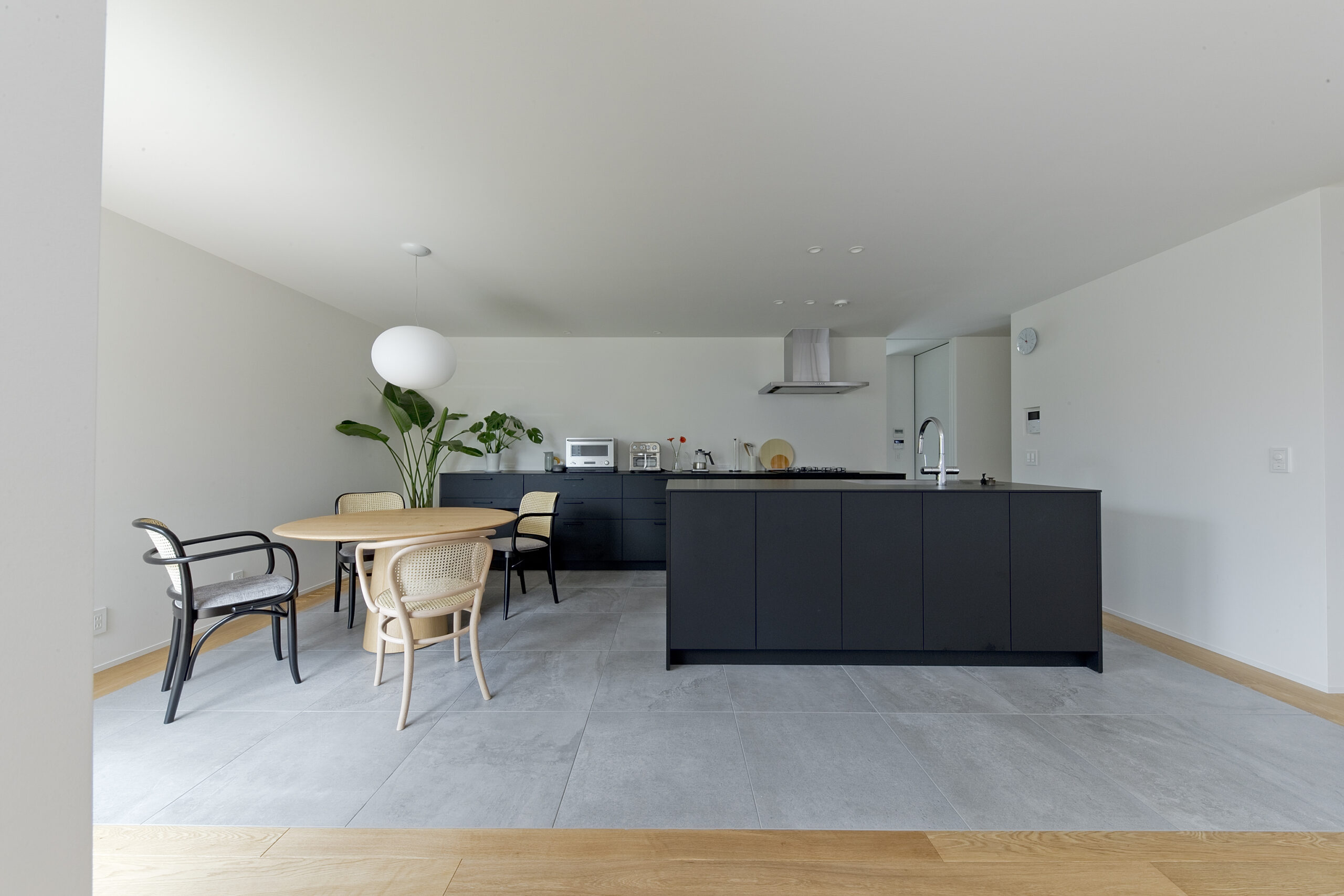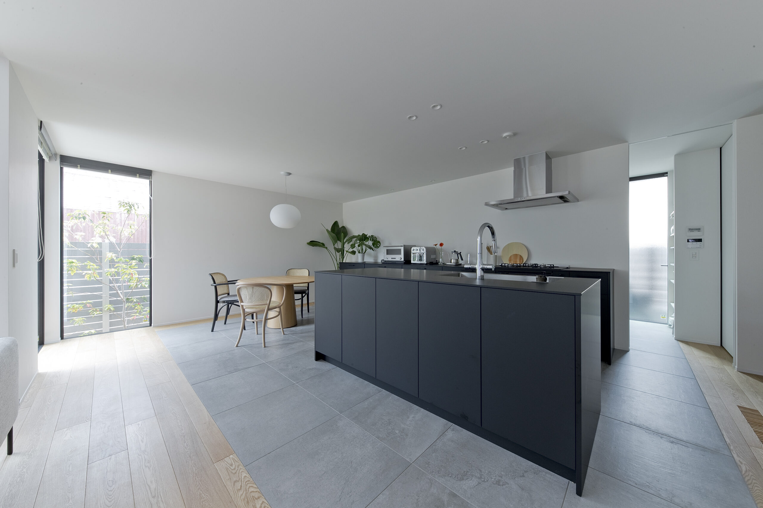 磁器質タイルや無垢の床が生む上質さの中で、