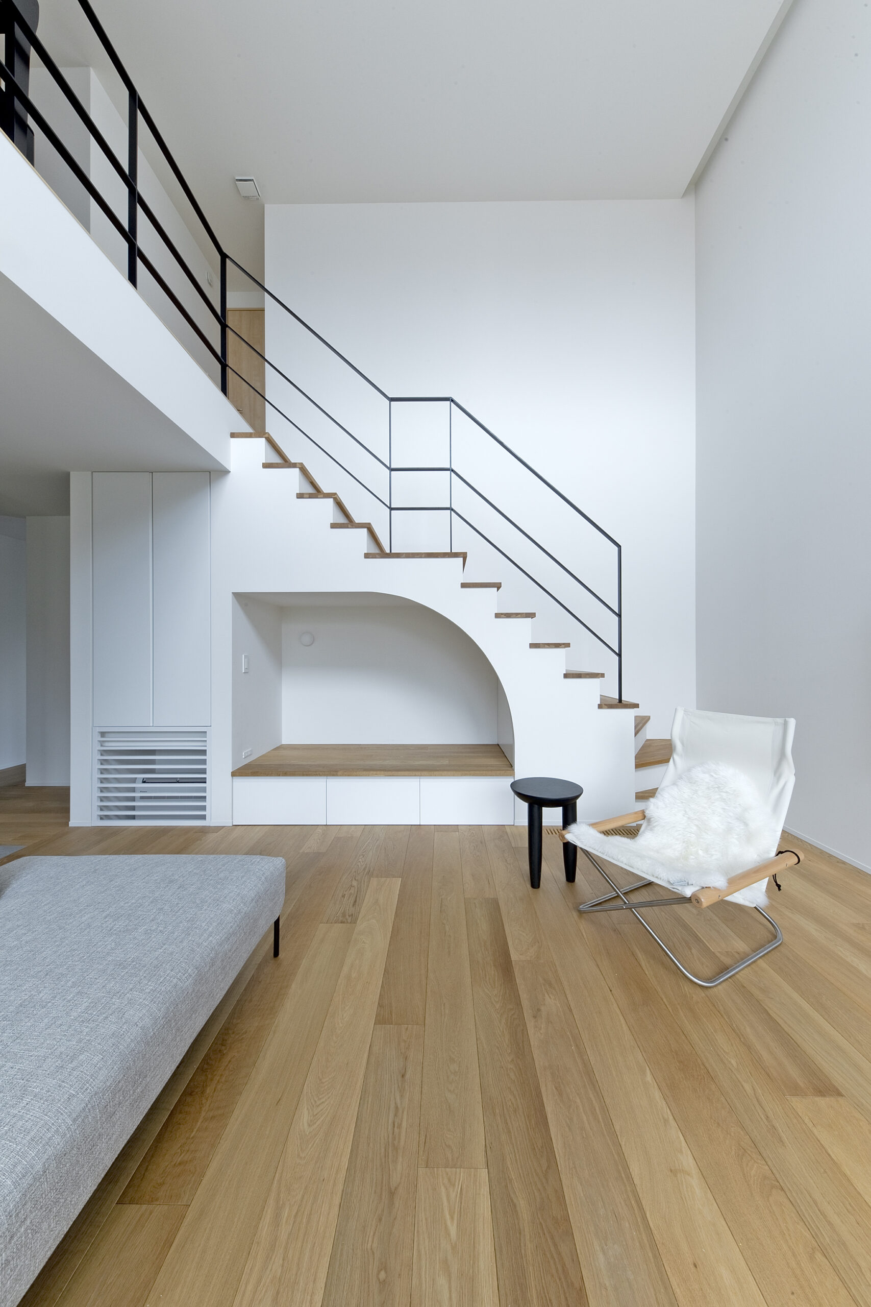 階段下には、家族が思い思いに過ごせる小さなヌック。
