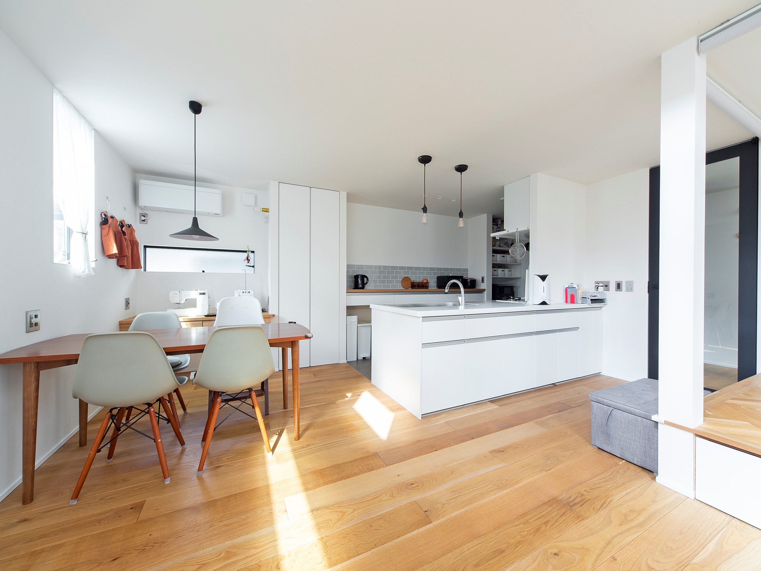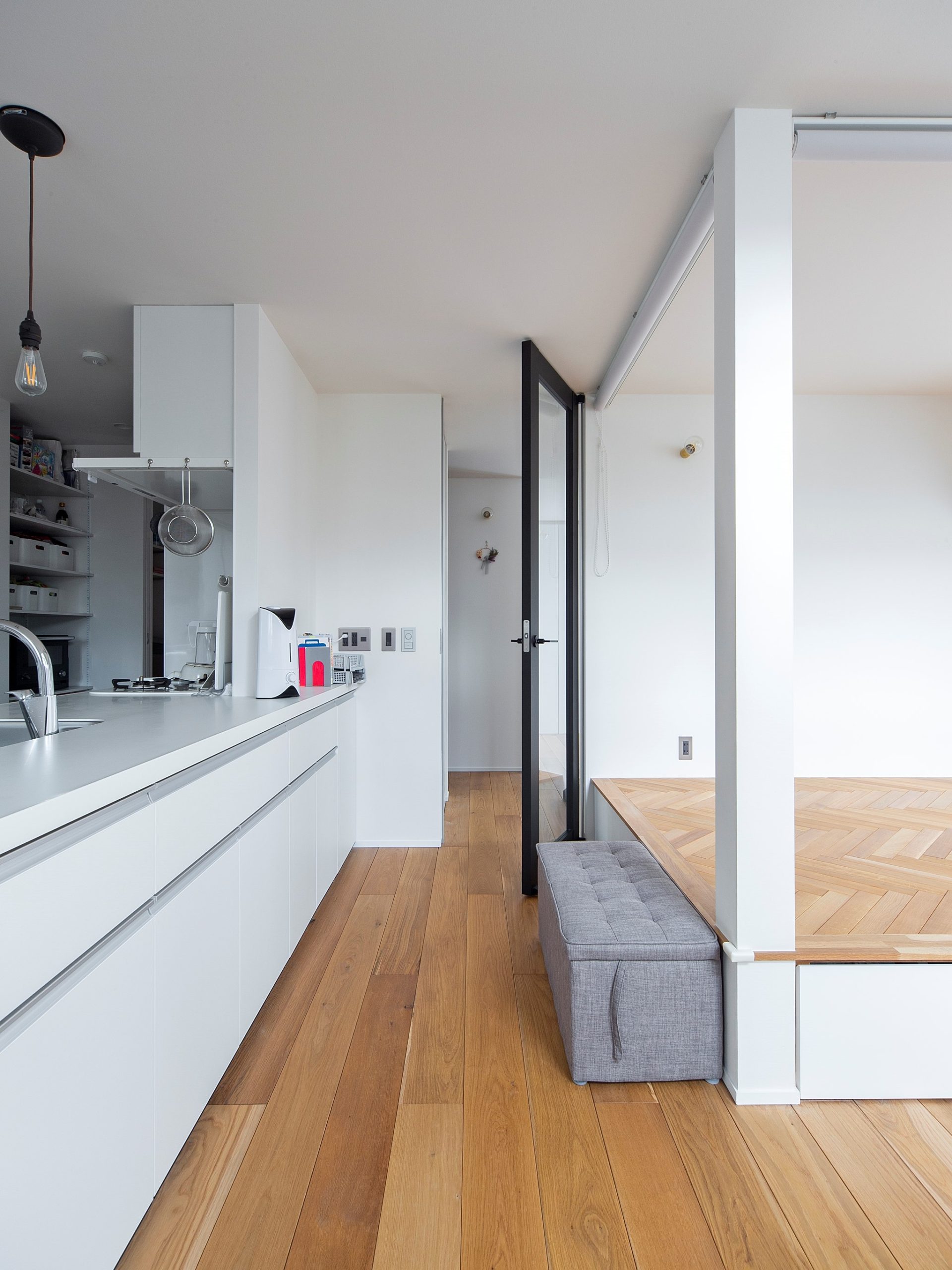 ヘリンボーン貼りの小上がりや、
