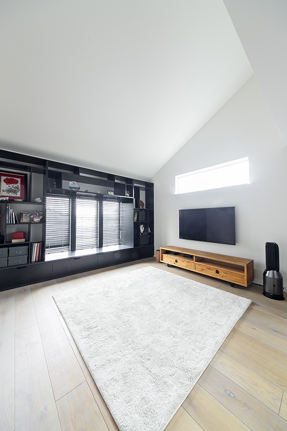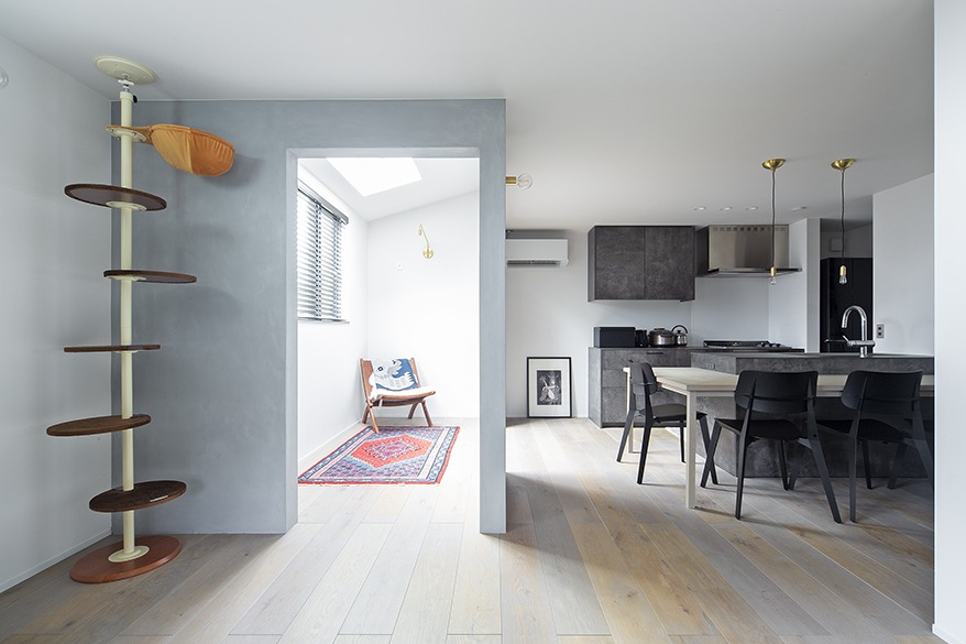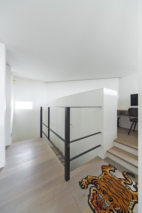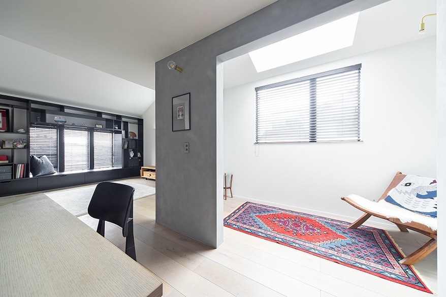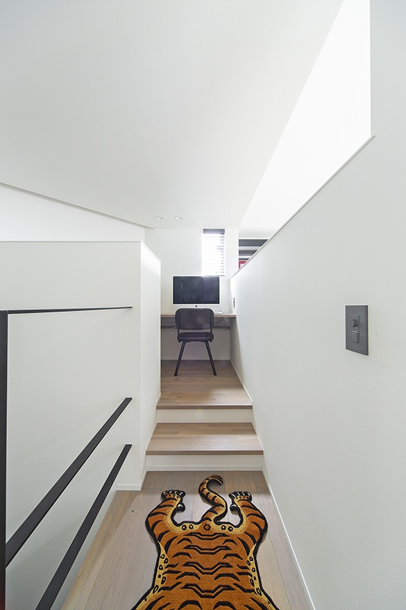 リモートワークがはかどるスキップフロアのワークスペース。LDKと繋がりを持ちながらも半個室で集中できるように。